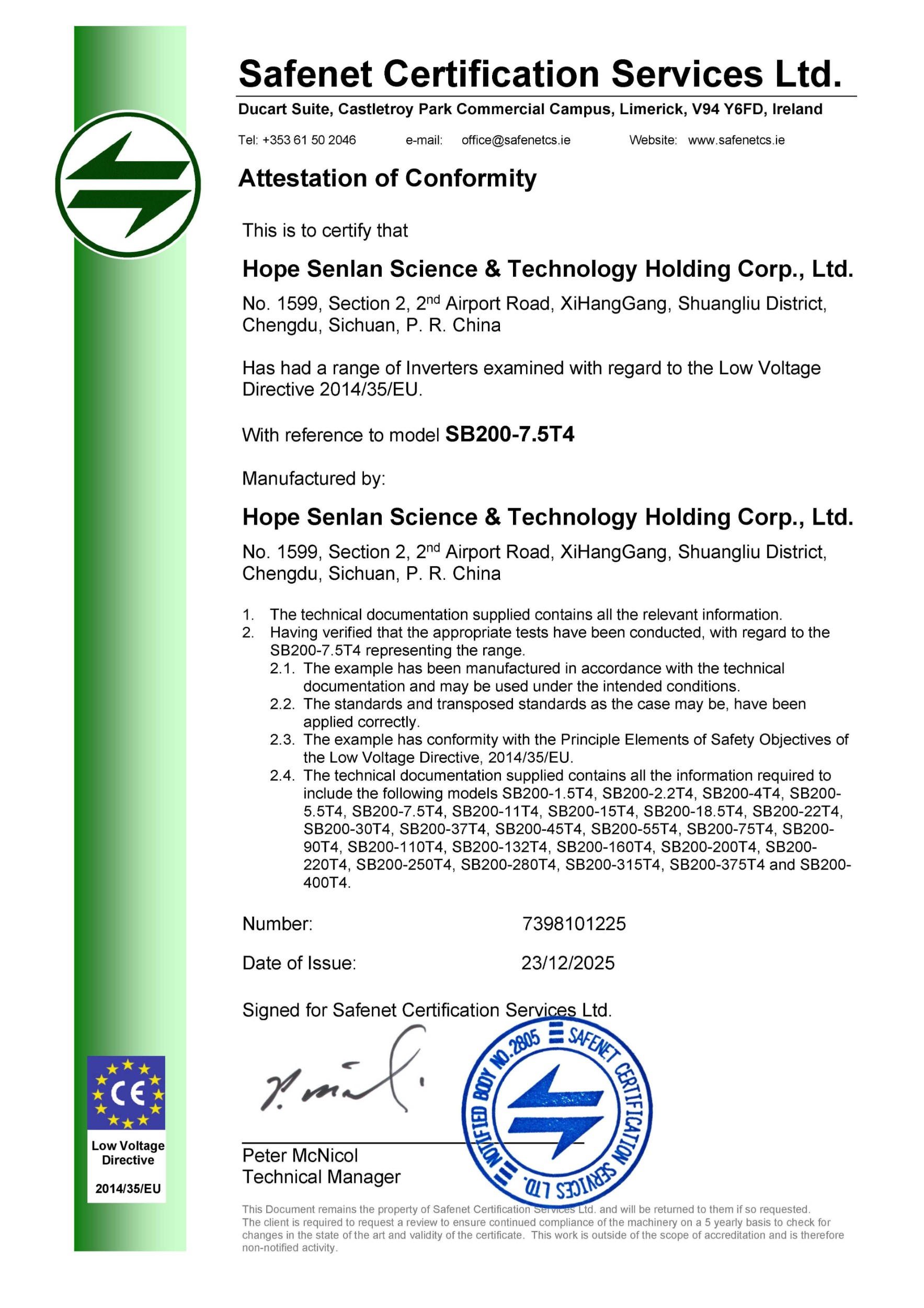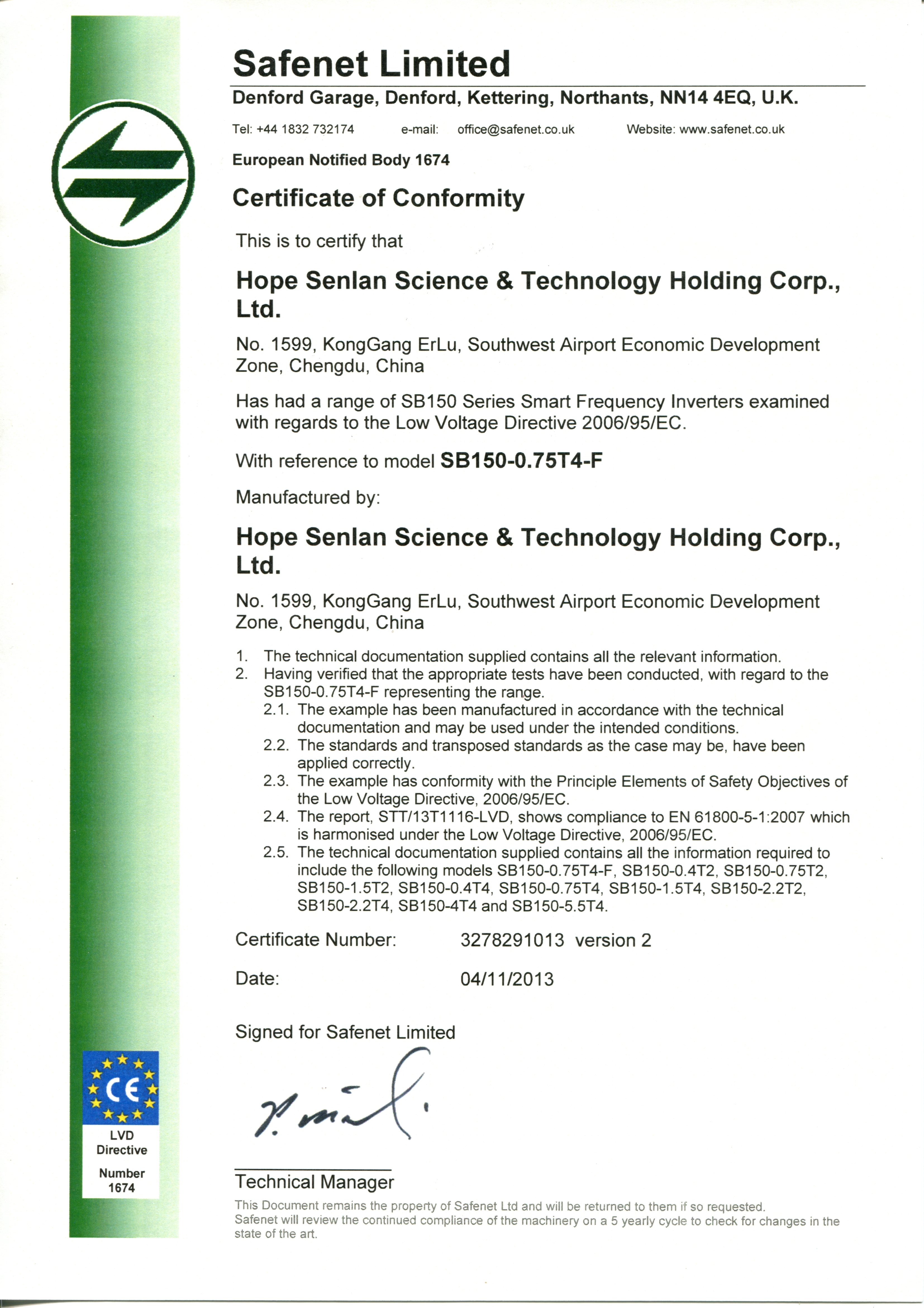 SB200系列 LVD证书