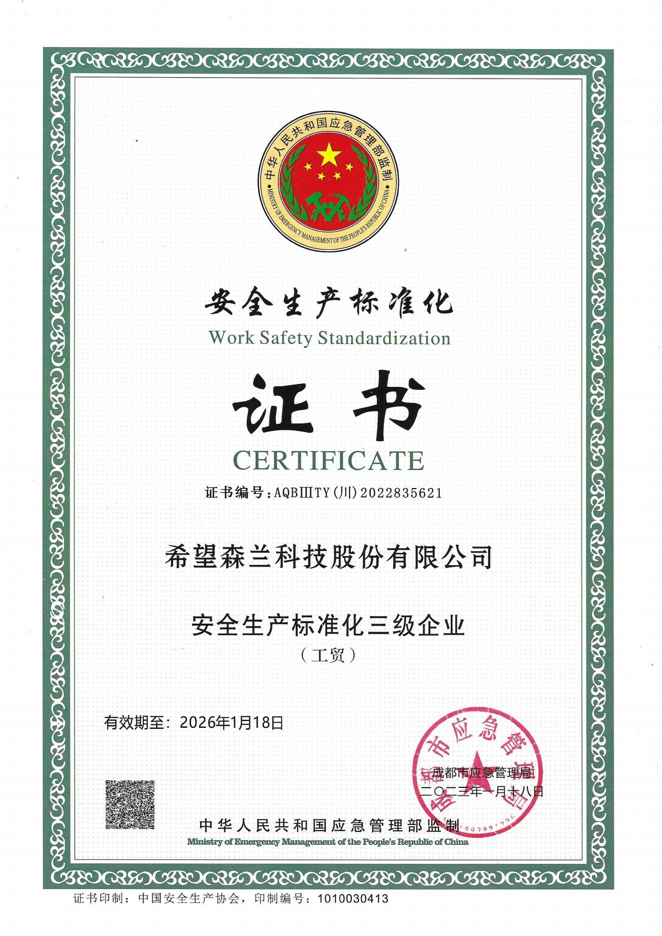 安全生产标准化三级企业
