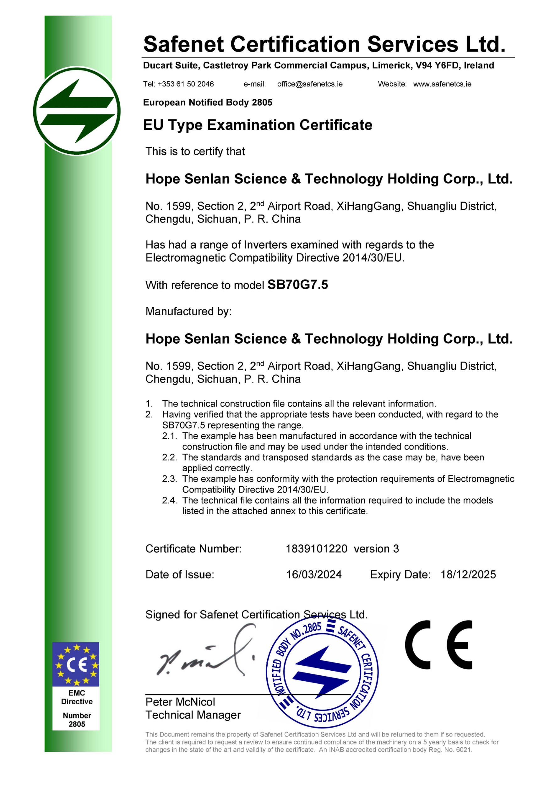 SB70G系列 EMC证书