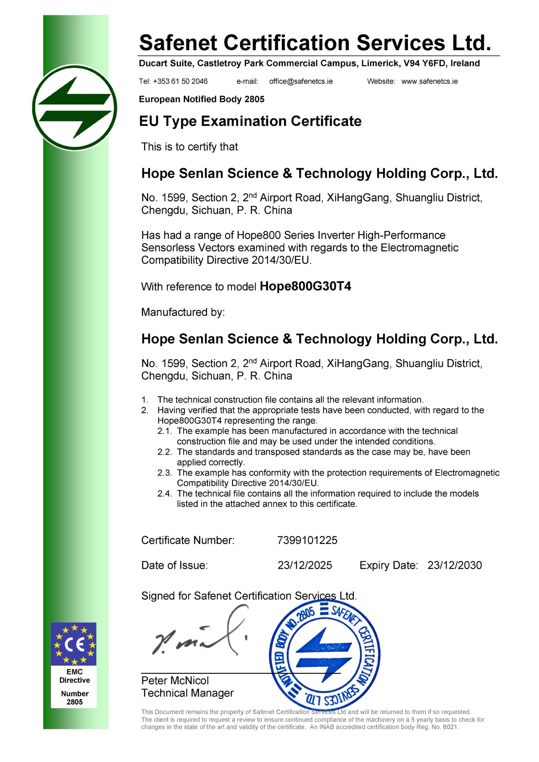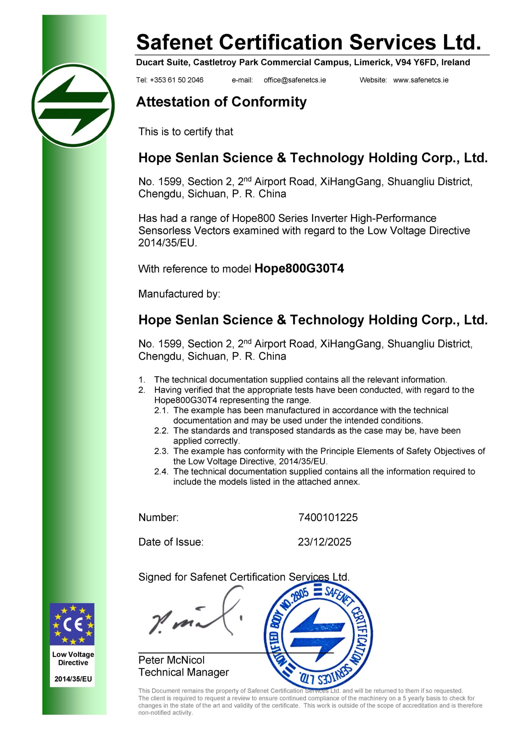 Hope800系列 LVD证书