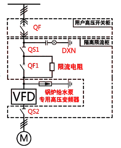 永利yl23411为锅炉电动给水泵拖动系统电动机配置的是给水泵专用变频调速系统。系统针对锅炉给水泵运行的特点和要求设计,完全符合锅炉给水泵的运行特点。系统一次主回路方案选取一拖一带限流柜方案,满足系统稳定运行要求的同时消除了高压上电时对系统的冲击。