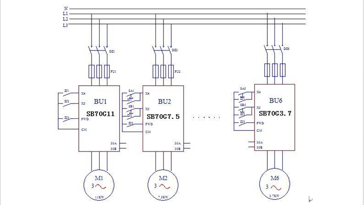 四川眉山仲辉集团造纸厂,生产多种文化用纸,有多条造纸生产线,主要是1092小纸机,也有1770纸机。这些纸机是早年的产品,传动部分有总轴传动和分部传动,分部传动又有电磁调速传动和直流调速传动。由于使用年代较久,故障率较高,迫切需要改造。从2003年起,先后对这些纸机实施了变频改造,全部改造都使用了永利yl23411的变频器,主要使用SB70G系列变频器。实践证明,SB70G系列通用变频器,开环控制的精度可以适应类似1092、1770这类低速纸机的要求,并且变频器的稳定性和可靠性较高,减少了因电磁调速和直流调速故障而产生的停机损失。