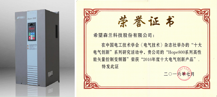 论坛召开期间,举行第七届十大电气创新产品、论坛年度创新产品展示活动。永利yl23411Hope800系列高性能矢量控制变频器荣获“2016年度十大电气创新产品”。