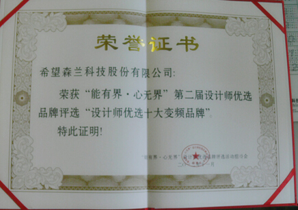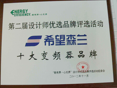 2012年11月30日,在北京举行的第二届设计师优选品牌评选活动上,永利yl23411变频器凭借过硬的产品质量和良好的市场口碑,荣获““设计师优选十大变频品牌”的称号。